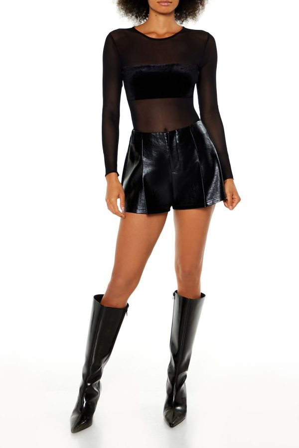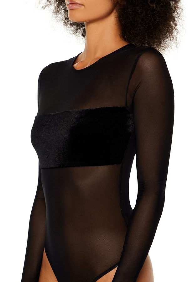 Home Womens Tops Mesh Long-Sleeve Thong Bodysuit