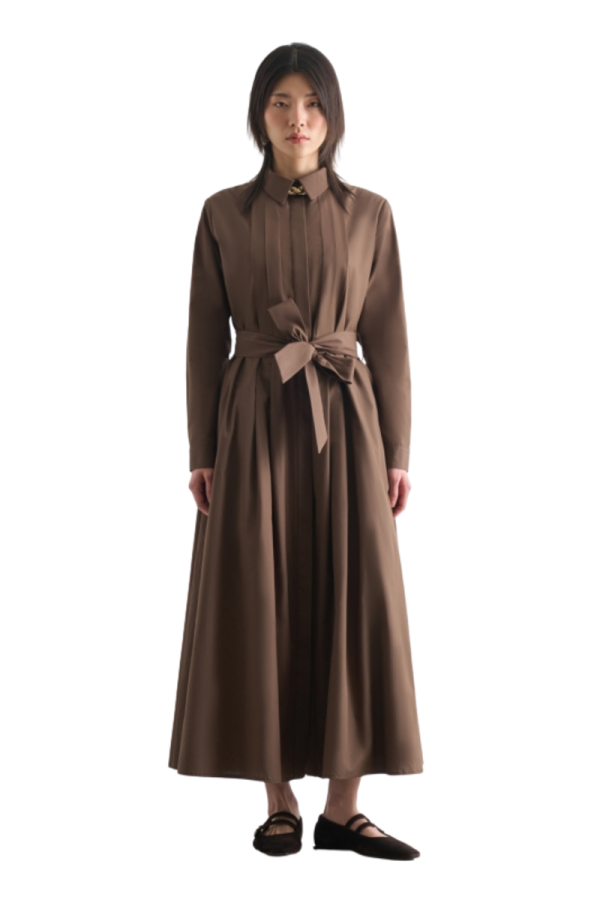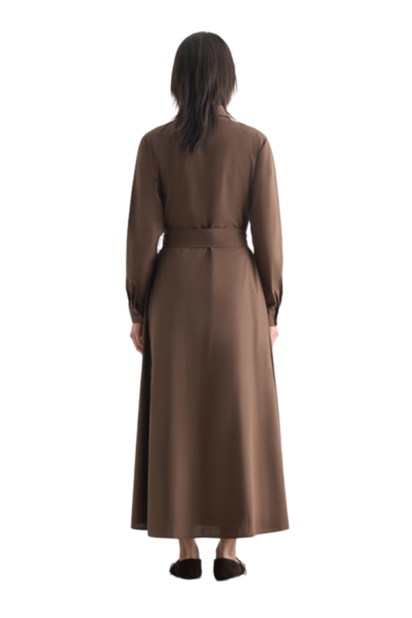 Mizalle Premium Pure Cotton Brown Pleated Long Dress %100 COTTONHeight: 139 cm. Chest: 56 cm. Sleeve length: 62 cm