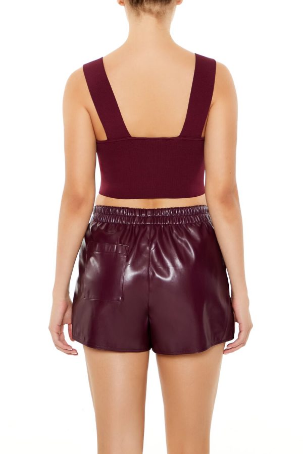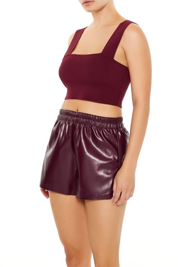 A sweater-knit crop top featuring a square-cut neckline and back and shoulder straps.